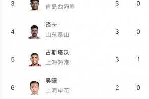 体育资讯3月30日讯 中超联赛第三轮比赛已全部结束,目前截止第三轮,共有5名球员以3粒进球的数据并列射手榜第一。