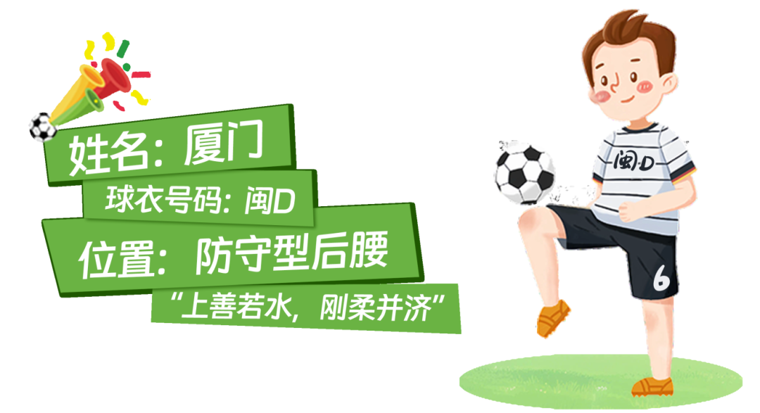 前场球员莆田、泉州、漳州、南平,攻势锋利;后场球员三明、龙岩、宁德、平潭,攻守兼备;中场球员福州、厦门则串联攻防。